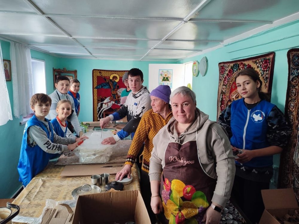 В работе принимали участие дети и родители образцового коллектива православного театра «Мир, который нужен нам» вместе с руководителем матушкой Ольгой Соболькиной, лидер волонтёрского движения «Волонтёры Победы Троицк» Анна Макарова а также социальная служба храма.