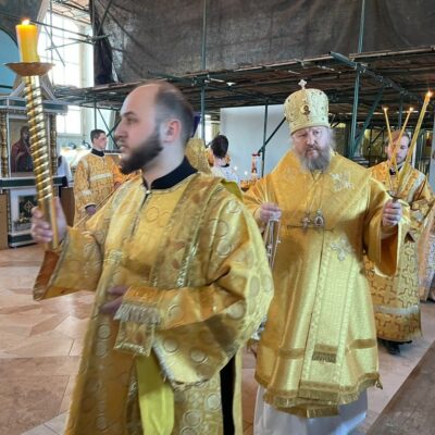 Архипастырю сослужили секретарь Троицкой епархии, ключарь кафедрального собора иерей Игорь Фокин и клирики — иерей Сергий Швалев, иерей Максим Лыков.