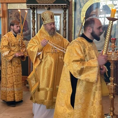 По окончании полиелея епископ Павел помазал елеем духовенство и прихожан, молившихся за богослужением.