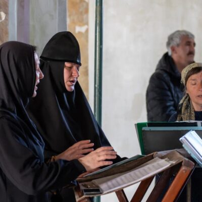 Богослужебные песнопения исполнил хор Свято-Казанского женского монастыря под управлением монахини Варсонофии (Кастальской-Бороздиной).