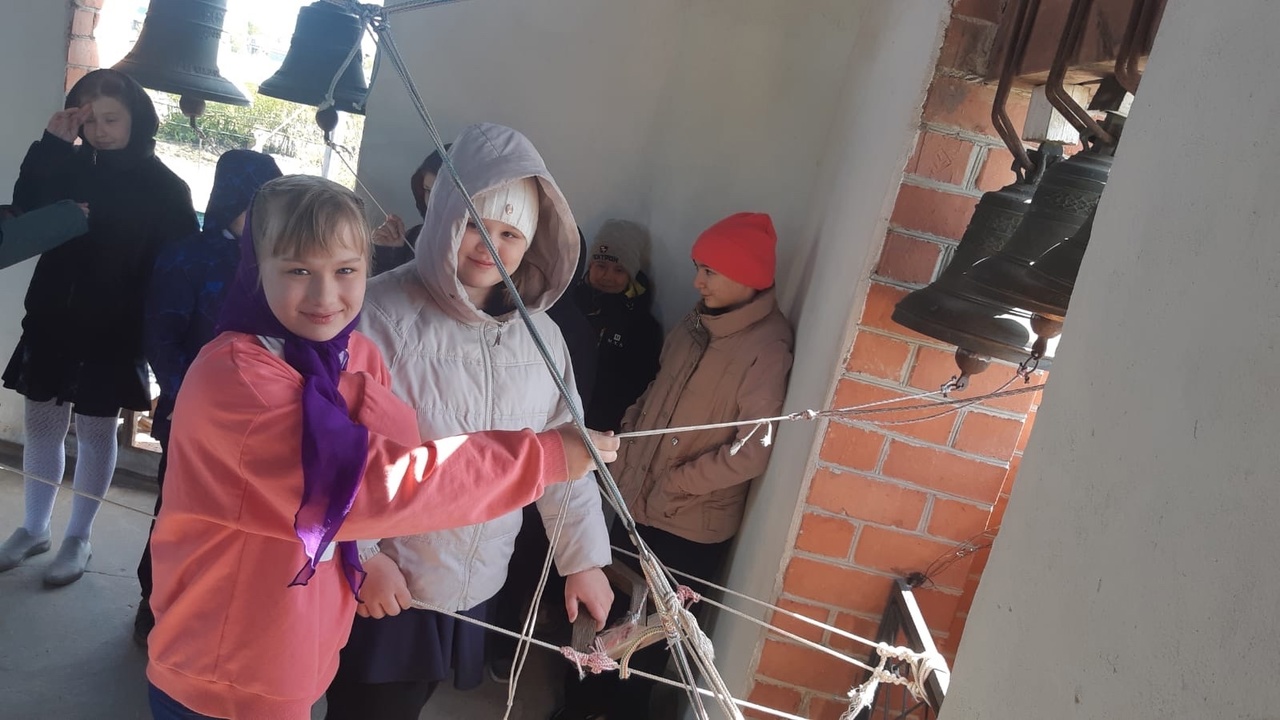 е9 Опубликовано 09.05.2024 1280 × 720 Еманжелинские школьники изучили устройство колокольни и колокольные перезвоны ← Пред.