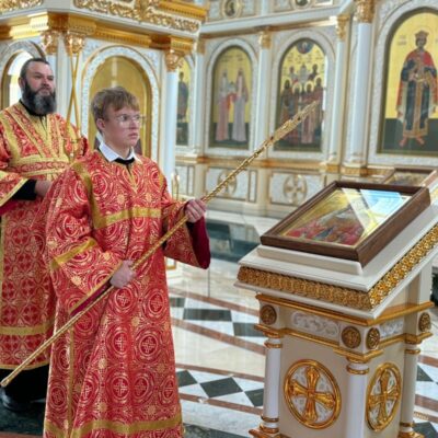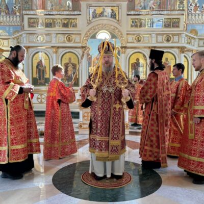 По завершении богослужения правящий архиерей обратился к молящимся с архипастырским словом, в котором рассказал о жизни и подвигах святого Целителя Пантелеимона, принявшем в третьем веке мученическую кончину за Христа.