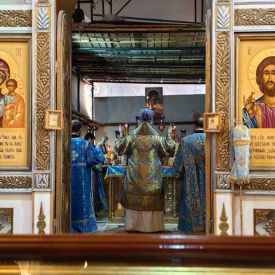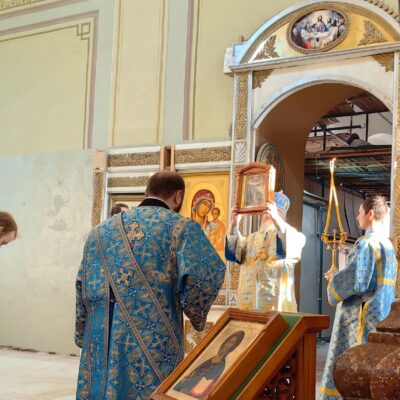 По отпусте Литургии было совершено славление перед иконой праздника Введения во храм Пресвятой Богородицы, после чего владыка Павел осенил иконой молящихся.