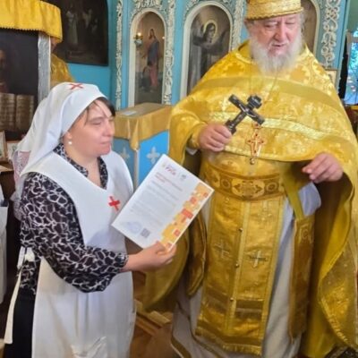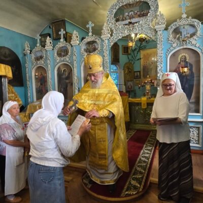 Банк еды «Русь» подготовил благодарственные письма сестрам милосердия и добровольцам отдела социального служения Свято-Введенского храма города Еманжелинска. Письма сестрам вручил благочинный Еманжелинского округа протоиерей Николай Трофимов.