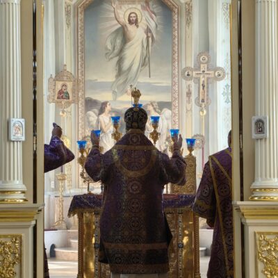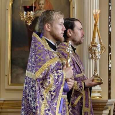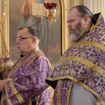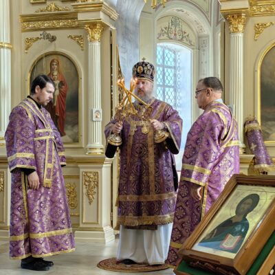 Архипастырю сослужили: и.о. наместника Свято-Никольского мужского монастыря близ села Кадымцево иеромонах Павел (Перунков), клирик кафедрального собора иерей Кирилл Кривоногов. Диаконский чин возглавил диакон Константин Герасимович. Богослужебные песнопения исполнил Архиерейский хор под управлением регента Юлии Макашовой.