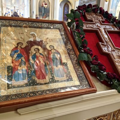 По окончании богослужения было совершено славление Честного и Животворящего Креста Господня и святых мучениц Веры, Надежды, Любви и матери их Софии. Были пропеты тропарь, кондак и величание, прочитана молитва.