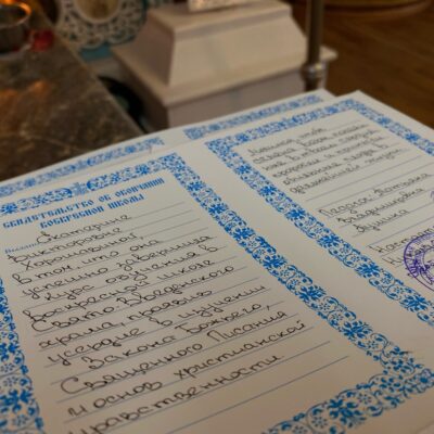 В завершение праздника к собравшимся с теплыми словами поздравлений и пастырским напутствием обратился настоятель храма, протоиерей Николай Трофимов. Отец Николай лично вручил каждому выпускнику сертификат об окончании воскресной школы, пожелав не останавливаться на достигнутом и продолжать свое духовное образование, неся в мир свет веры Христовой.