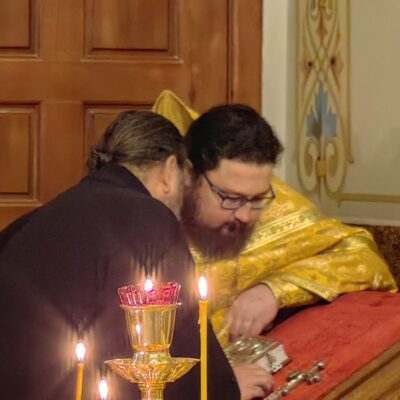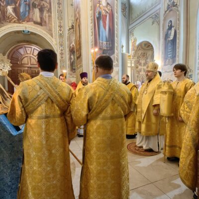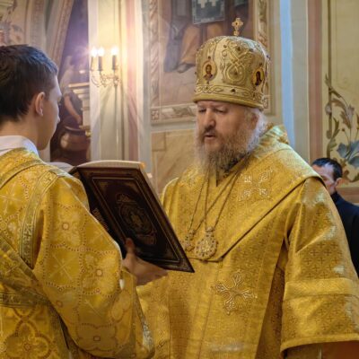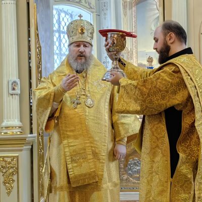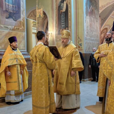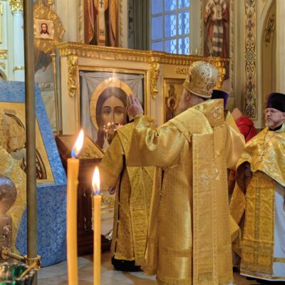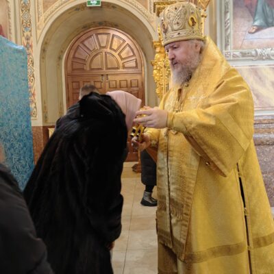 По завершении проповеди епископ Павел пригласил верующих в епархиальную трапезную на чтение очередной главы Священного Писания и чаепитие, а также сделал объявление о предстоящих службах: