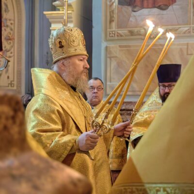 «Нам же с вами, как никогда, нужно прибегать к Богу за помощью. Не нужно унывать и печалиться, но чаще призывать Бога на помощь. И тогда Господь будет с нами, охранять нас от всякого зла, напасти, уныния, от тоски, будет хранить в мире и радости. И мы с радостью, подаваемой Христом, будем жить и благодарить Бога за все в нашей жизни. Будем видеть, что Господь дает все нам потребное и необходимое», — наставил архипастырь.