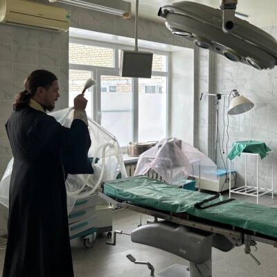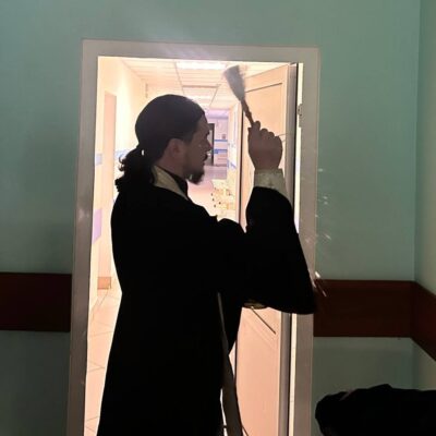 Отец Стефан совершил молебен, обошел все помещения, окропив их святой водой и помолился, чтобы Господь даровал помощь всем медицинским работникам и здравие болящим.