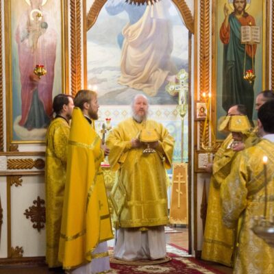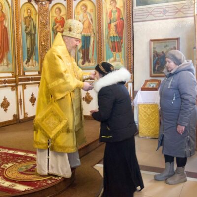 По окончании богослужения архиерей поздравил молящихся с праздником Святого праведного Иоанна Кронштадтского и преподал каждому архипастырское благословение.