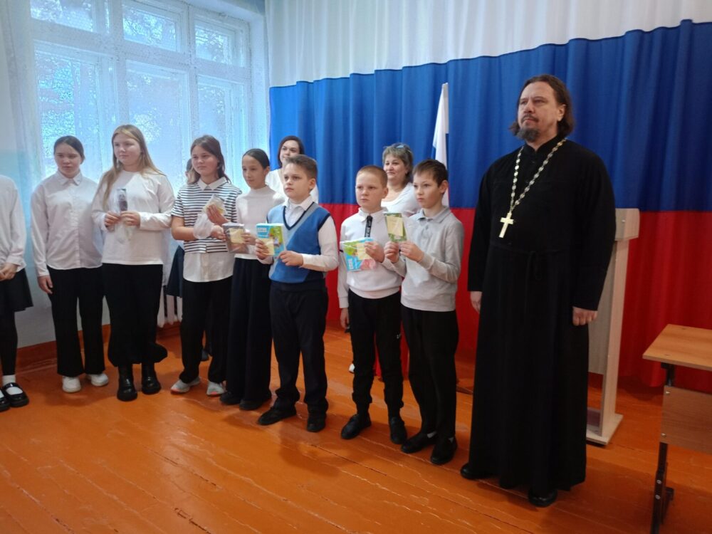 Перед награждением с приветственным словом выступил настоятель храма Святого Архистратига Михаила села Каратабан протоиерей Евгений Егунов. Священник поздравил учеников с прошедшими праздниками, рассказал о значимости Рождества Христова, поблагодарил за выполненные поделки и вручил им небольшие подарки.