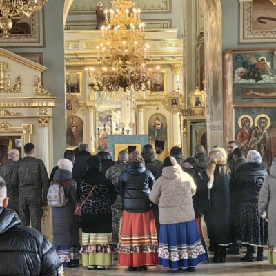 По завершении литургии священнослужители отслужили молебен Пресвятой Богородице в центре храма. За богослужением молились Глава города Троицка Дмитрий Гатов, атаман Третьего (Троицкого) казачьего военного отдела Виталий Трошин, а также многочисленные казаки и казачки.