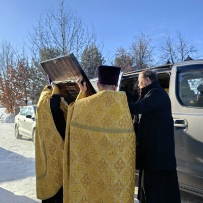 В субботу, 7 февраля, в последний день пребывания в Свято-Троицком кафедральном соборе города Троицка иконы Божией Матери «Табынская», духовенство собора — иерей Сергий Швалев, иерей Максим Лыков, иеромонах Александр (Баранов) — совершили Божественную Литургию.