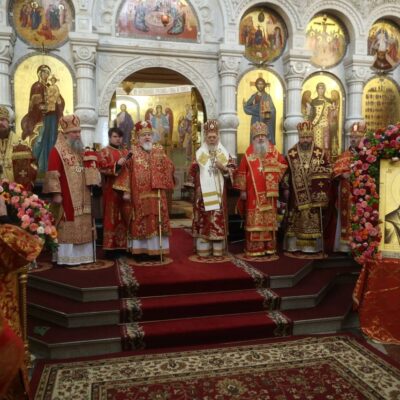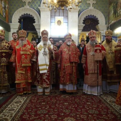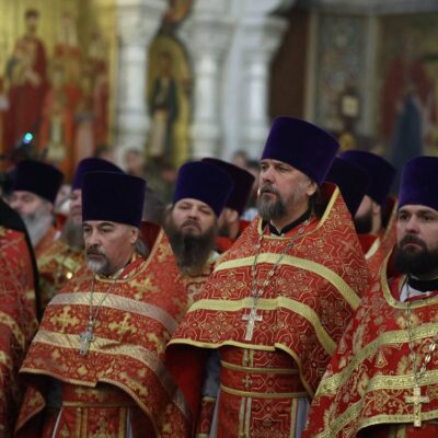 По благословению епископа Троицкого и Южноуральского Павла, в воскресенье 8 февраля, в празднование Собора новомучеников и исповедников Церкви Русской, клирики Троицкой епархии: секретарь Троицкой епархии иерей Игорь Фокин, благочинный Троицкого церковного округа протоиерей Святослав Соболькин, руководитель епархиального отдела по взаимодействию с Вооруженными силами и Казачеством иерей Андрей Попов приняли участите в торжественном богослужении в Храме-Памятнике на Крови г. Екатеринбурга.