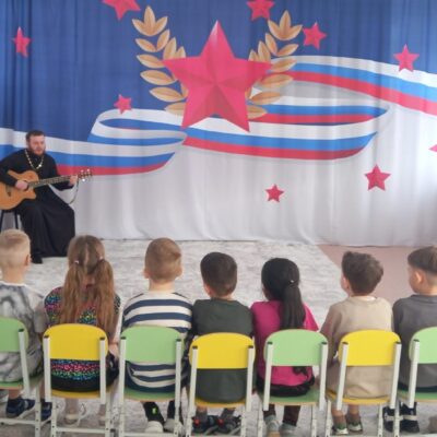 Беседа была не только познавательной, но и очень душевной. Отец Вадим исполнил на гитаре для ребят песню о родном доме, любви к Родине, о нашей прекрасной России.