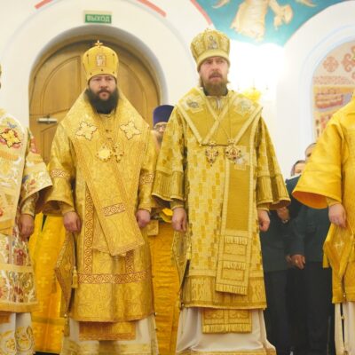 Архиереям сослужили: секретарь Челябинской епархии протоиерей Игорь Шестаков, секретарь Златоустовской епархии протоиерей Андрей Фоменко и многочисленное духовенство Златоустовской епархии. За богослужением молился глава Златоуста Олег Решетников.
