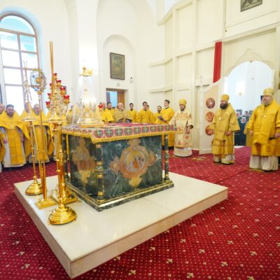21 февраля митрополит Челябинский и Миасский Алексий, епископ Магнитогорский и Верхнеуральский Зосима, епископ Троицкий и Южноуральский Павел, епископ Златоустовский и Саткинский Серафим возглавили Божественную литургию в Серафимовском кафедральном соборе города Златоуста.