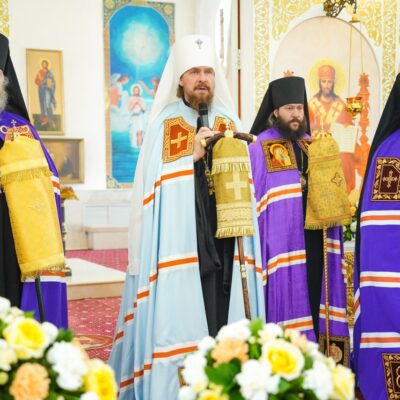 В ответном слове владыка Серафим поблагодарил митрополита Алексия и архиереев за добрые пожелания и напутствия, отметив, что он впервые оказался на южноуральской земле и приступает к своему служению с трепетом и с чувством ответственности, с благодарностью за оказанное доверие.