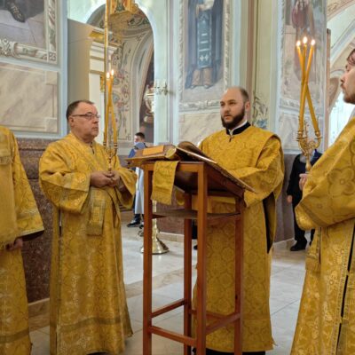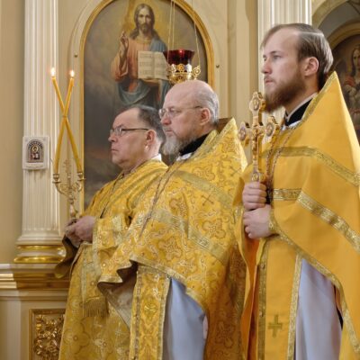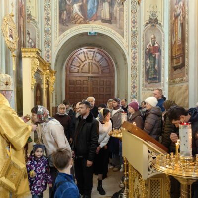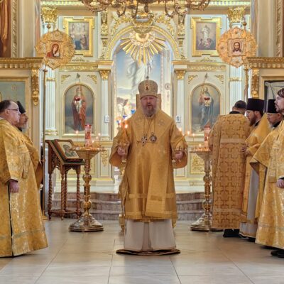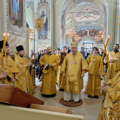 В завершение правящий архиерей поздравил духовенство и молящихся с праздником, причастников с принятием святых Христовых Тайн, преподал всем архипастырское благословение и пригласил в епархиальную трапезную на разбор очередной главы Евангелия и чаепитие.