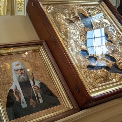 По заамвонной молитве архипастырь с духовенством совершили славление святителю Тихону, Патриарху Московскому и всея России, память которого совершается в этот день.