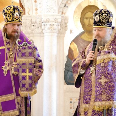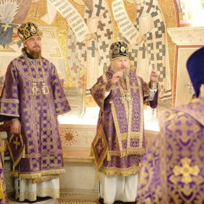 За богослужением молилась настоятельница Одигитриевского женского монастыря игумения Евсевия (Лобанова). Песнопения службы исполнил Архиерейский мужской хор под управлением регента Александра Хакимова.