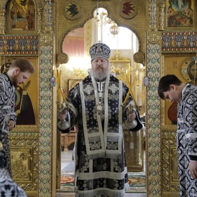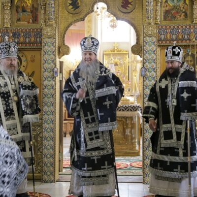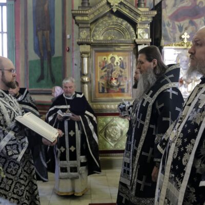 Митрополит Даниил в начале своей проповеди подчеркнул, что никогда еще в Александро-Невском соборе Литургии Преждеосвященных Даров не служилась таким составом — три владыки и сонм священнослужителей.