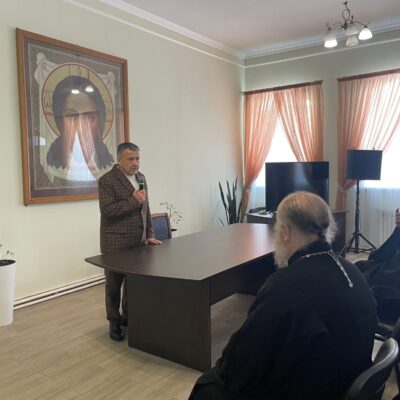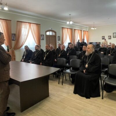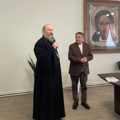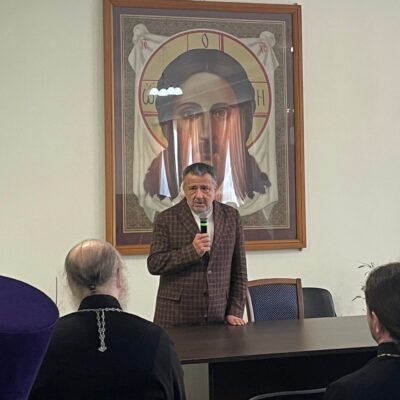 18 марта, после общей исповеди духовенства и Литургии в актовом зале Епархиального управления состоялась встреча духовенства с известным православным писателем, публицистом и культурологом Василием Давидовичем Ирзабековым. Гостя представил священству епископ Троицкий и Южноуральский Павел.