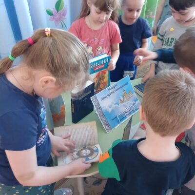 Воспитатели уделили особое внимание книгам, которые учат милосердию, состраданию и любви к ближним. Вместе с детьми они рассматривали красочные иллюстрации в Библии для детей, обсуждали смысл притч и пословиц, проводили выставки книг, а также учились прописывать буквы алфавита.