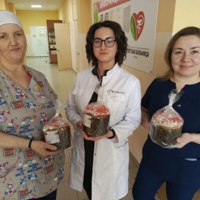 Пасхальные куличи были розданы во всех отделениях больницы. Исполняющая обязанности главного врача Александра Николаева подчеркнула значимость этого визита: