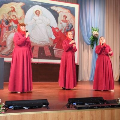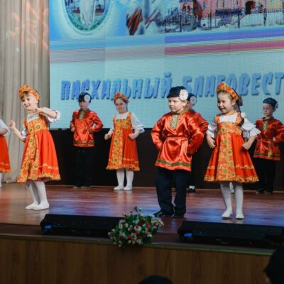 В зрительном зале Центрального Дома культуры состоялся праздничный концерт, который традиционно начался с пения пасхального тропаря в исполнении певчих клироса Свято-Никольского храма.
