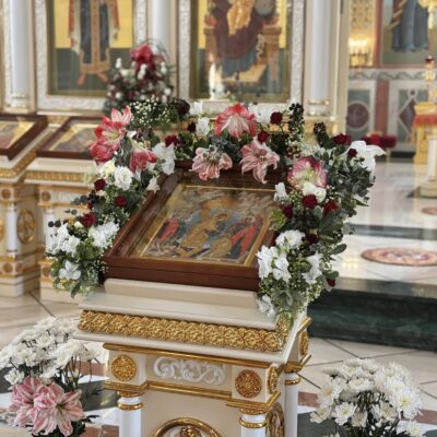 Богослужебные песнопения прозвучали в исполнении малого состава Архиерейского хора под управлением регента Юлии Макашовой.