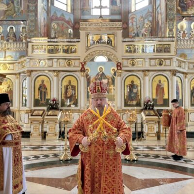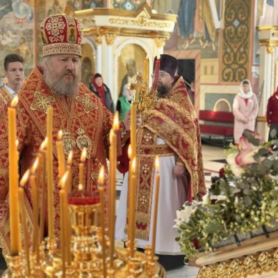 Владыка поприветствовал участников Богослужения Пасхальным возгласом «Христос Воскресе!», поздравил всех со Светлой Субботой и завершением Светлой седмицы, после чего обратился к присутствующим с архипастырским словом.