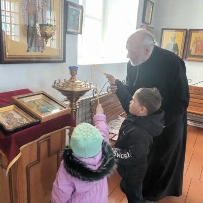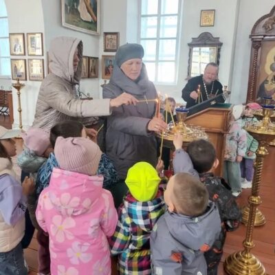 Трогательным моментом стало посещение основной части храма: дети при поддержке взрослых зажигали свечи и ставили их перед иконами.