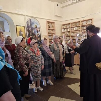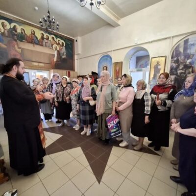 После экскурсии все вместе отправились в воскресную школу, где в трапезной состоялось чаепитие. В тёплой и душевной атмосфере участницы встречи смогли задать отцу Андрею интересующие вопросы и получить содержательные ответы.