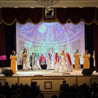 Юные артисты «Благовеста» подготовили для зрителей миниатюру «Пасхальное яйцо», напомнив о чуде Воскресения Христова и о мироносице Марии Магдалине. Яркая постановка по мотивам сказки братьев Гримм «Бременские музыканты» погрузила публику в атмосферу волшебства и дружбы. Музыкальным подарком для гостей вечера стало выступление академического хора «Созвучие».